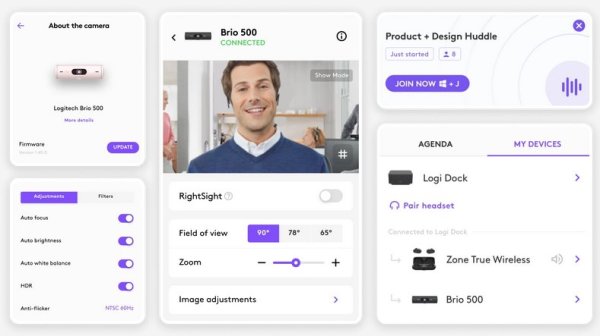 Technologie RightLight 4 kamery Brio 500 se automaticky přizpůsobí vašemu prostředí, takže budete působit jako dobře nasvícení i za špatných světelných podmínek.
