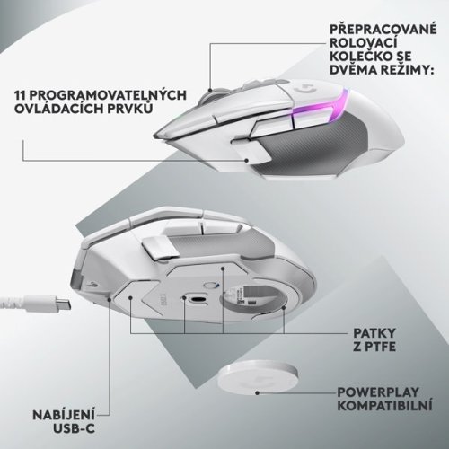 Myš G502 X LIGHTSPEED je kompatibilní s technologií POWERPLAY. Zůstává stále nabitá, při nečinnosti i během hraní, díky jedinečnému řešení bezdrátového nabíjení (prodává se samostatně). Už se nikdy nestarejte o výdrž baterie!