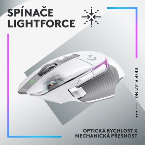Herní myš G502 X je nejoblíbenější myší na světě. Byla modernizována a přepracována s nejnovějšími inovacemi v oblasti herních technologií a disponuje zcela novou technologií hybridních opticko-mechanických spínačů LIGHTFORCE. Neuvěřitelná rychlost, spolehlivost a zároveň přesná aktivace nyní tvoří jeden celek.