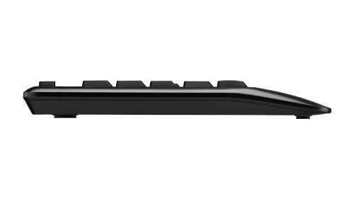 Výhodný set bezdrátové klávesnice a myši. Bezdrátový přenos probíhá na frekvenci 2,4 GHz mezi periferním zařízením a přijímačem, který se zasouvá do USB portu počítače. Prostorově velkorysá opěrka zápěstí, profilovaná myš pro praváky a nastavitelná výška klávesnice vám poskytne opravdové pohodlí.