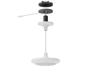 Závěsný držák stolních mikrofonů umožňuje zavěsit stolní mikrofony Rally v místnostech s vysokým stropem a stoly, na které nelze mikrofony připevnit, nebo které mají jedinečné uspořádání. Zavěšení mikrofonů ze stropu zajistí, že budou všichni slyšet stejně i ve vašich největších místnostech.