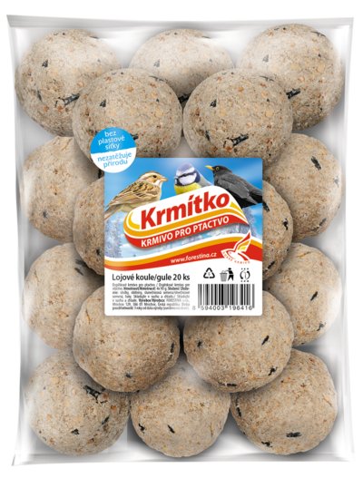 Lojová koule Krmítko je vhodná pro venkovní ptactvo jako doplňkové krmivo. V letních měsících slouží jako příkrm, v zimě při nedostatku potravy jako důležitá část krmiva ptactva. Kouli je třeba umístit na místo chráněné před deštěm. Je v síťce, kterou je možné v případě umístění do krmítka sundat. Skládá se z ovesných a pšeničných vloček, obilí, jader slunečnice a rostlinných olejů. V balení je 20 lojových koulí po 90 gramech.