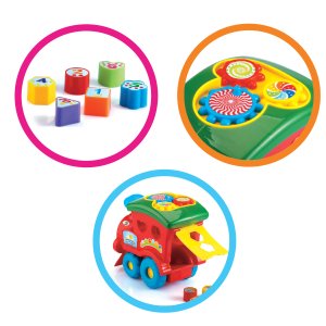 Barevná vkládačka ve tvaru lokomotivy je určena pro ty nejmenší. S tímto kouskem si děťátko užije zaručeně spoustu zábavy! Jednotlivé tvary s obrázky lze vkládat do příslušných otvorů. Vkládačka rozvíjí motorické, zrakové a sluchové schopnosti děťátka.