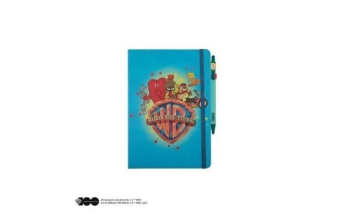 Zápisník velikosti A5 a pero s motivem Looney Tunes ke 100. výročí Warner Bros. Obsahuje střídavě linkované a prázdné strany. Obal je příjemný a napodobuje koženku.