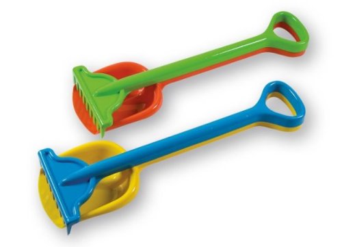 Sada obsahuje barevnou plastovou lopatu a hrábě.