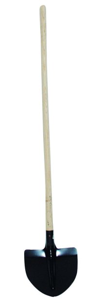 Ocelová špičatá lopata s násadou vhodná pro práci na zahradě nebo na stavbě.