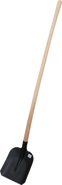 Ocelová lopata s násadou vhodná pro práci na zahradě nebo na stavbě.