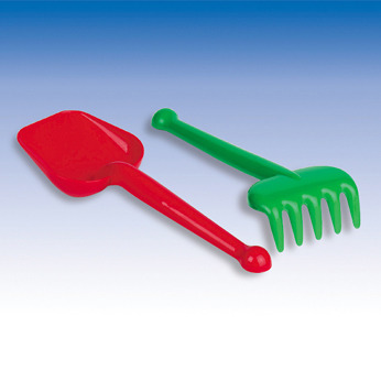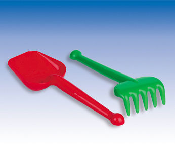 Plastová lopatka a hrábě malé nesmí chybět žádnému malému pomocníkovi při práci na zahradě nebo při hře na písku!