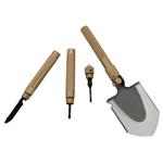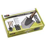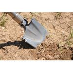 Samotná lopatka je snadno sestavitelná sešroubováním jednotlivých částí. Pouze stačí zvolit vhodný nástroj a jeho předsazení a následně jej jednoduše zajistíte matici na rukojeti. Vše je dodáváno v odolném pouzdře s maskáčovým designem, které si snadno zavěsíte za opasek, takže máte lopatku neustále po ruce.