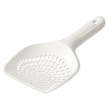 Plastová lopatka k odstraňování kočkolitu. Velikost: 11,5 x 25,5 x 4,5 cm. Různé barvy.