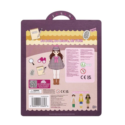 Obleček s doplňky pro panenky Lottie pro malé detektivy nadchne každou malou slečnu Marplovou či pana Poirota. Oblečte svou panenku Lottie do typického kostkovaného ponča, na hlavu jí nasaďte kostkovanou čepici a vybavte ji lupou, dalekohledem, poznámkovým blokem a perem, aby vypadala jako skutečný detektiv. Umožněte dětem, aby se ponořily do napínavých detektivních dobrodružství, využily svůj pozorovací talent a logické uvažování pro vyřešení detektivních záhad. Sada oblečení pro panenky podporuje imaginativní hru, která rozvíjí sebevědomí, kreativní myšlení, jazykové dovednosti a sociální inteligenci dětí. Panenka Lottie je cenami ověnčená a inkluzivní značka panenek inspirovaná skutečnými dětmi, což znamená, že zobrazuje děti různého etnického původu, tělesných schopnosti, kultur a boří stereotypy. Byla vyvinuta ve spolupráci s akademiky a odborníky na rozvoj dětí. Panenka není součástí balení. Obsah balení: kostkované pončokostkovaná čepicetričkokalhoty vysoké botydalekohledlupaperopoznámkový blok Hlavní vlastnosti: rozvíjí sebevědomí, kreativní myšlení, jazykové dovednosti a sociální inteligenci dětíoceňovaná a inkluzivní značkapanenka není součástí balení