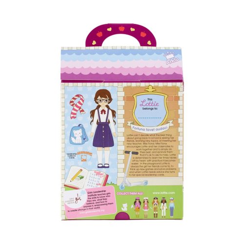 Lottie Panenka školačka Lottie se nemůže rozhodnout co má nejradši na 1. září. To, že znovu uvidí své kamarády, že se naučí nové věci nebo se snad těší na svou paní učitelku Fionu? Paní učitelka Fiona podporuje Lottie a její spolužáky ve spolupráci a učí je, že je úplně v pořádku požádat o pomoc, když si nevím rady. Lottie se také rozhodla, že se naučí svůj rozvrh hodin nazpaměť. Když jsou všichni spolužáci spolu na hřišti, je Lottie ta, za kterou ostatní přijdou, aby vymyslela novou hru nebo vyřešila problém. A když si Lottie neví rady, podívá se do svých kartiček pro lídry. V balení Šaty v námočnické modréBílá polokošileŽenský motýlekPodkolenkyMary Jane boty v námořnické barvěBrýlePruhovaný červeno-bílý šálBatoh s kočičkou10 kartiček s leadership tipy pro dívky Hlavní vlastnosti Kloubová panenka s pohyblivými koleny, pefektní pro představivou hruPrémiové nylonové vlasy jsou hebké na dotek a nezamotávají sePanenka z plastu bez ftalátů, měkká na dotekPanenka má odnímatelné boty a stojí samostatněHnědé vlasy, hnědé očiMilované všemi dětmi, vhodné od 3+ letMalá a roztomilá panenka ve velikosti 18 cm Leadership tipy pro dívkyLottie Panenka školačka byla vytvořena ve spolupráci s americkou neziskovou společností Girls Leadership Institute. GLI nabízí tábory a workshopy, které dívky, rodiče a školitele naučí základy emoční inteligence, zdravých vztahů, asertivity. GLI poskytli tipy, které jsou uvedeny na kartičkách.