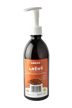 Doplňkové krmivo pro psy a kočky každého věku i plemene, lněný olej.