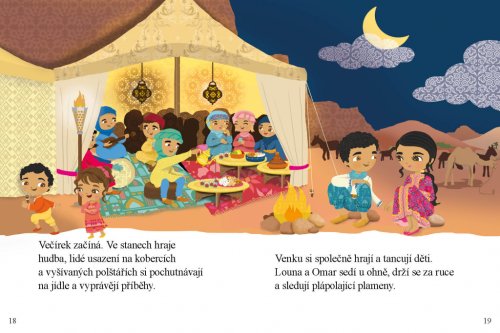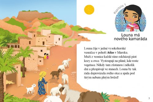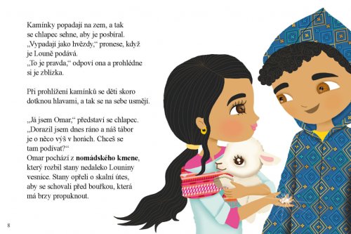 Louna žije ve vysokohorské vesničce v pohoří Atlas v Maroku. Jednoho dne najde v potůčku pět nádherných kamínků, které se blyští jako diamanty a vypadají jako hvězdy. Ozdobí jimi pásek a ten daruje svému novému příteli, nomádskému chlapci Omarovi. Když se krajem přežene písečná bouře a Omar se ztratí, Louna má o něj obrovský strach. Vzhlíží k obloze a přes slzy si všimne tajemné záře. Ve světelném kruhu se na nebi třpytí pět hvězd…