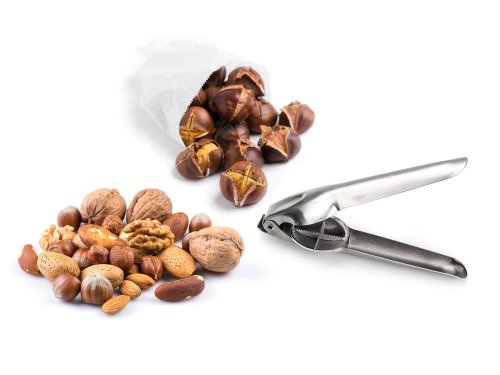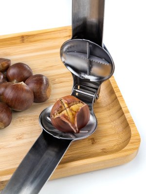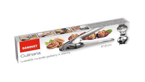 Louskáček na jedlé kaštany a ořechy CULINARIA o délce 18 cm, je z nereové oceli, vhodný pro louskání syrových jedlých kaštanů, ořechů různých druhů a velikostí.