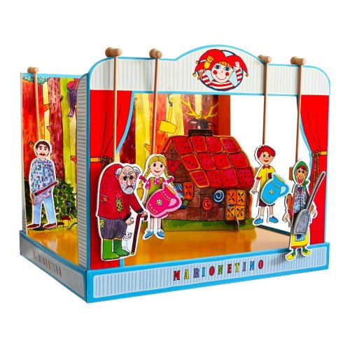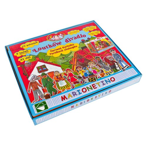 Loutkové divadlo inspirované pohádkami Červená karkulka a Perníková chaloupka přináší dětem nejen zábavu, ale i cenný rozvoj řečových a komunikačních dovedností, fantazie a kreativity. Tento loutkový set obsahuje skládací loutkové divadlo, 9 loutek, 5 dřevěných vodicích tyček, lepicí hmotu, 9 rekvizit, 5 scén, 4 scénické doplňky se stojánky a 10 pohádek ke stažení zdarma. Vyrobeno z knihařské lepenky, dřeva a laminovaného kartonu. Podporuje rozvoj jemné motoriky, improvizace a vyjadřování u dětí. Ideální pro společné rodinné chvíle nebo hraní ve školkách a dětských skupinách. Rozměry balení 48 x 26 x 6 cm Vhodné pro děti od 3 let