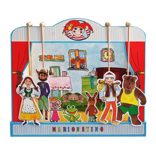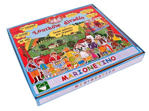 Loutkové divadlo České pohádky pro nejmenší je krásná sada, která potěší všechny malé i velké milovníky českých pohádek. Balení obsahuje skládací loutkové divadlo, 15 loutek, 5 dřevěných vodicích tyček, lepicí hmotu, rekvizity, 5 scén a scénické doplňky se stojánky. Součástí jsou také kódy ke stažení více než 10 scénářů k oblíbeným pohádkám, například Budulínek, Čert a Káča, Boudobudko, kdo v tobě přebývá a další. Vyrobeno z kvalitní knihařské lepenky, dřeva a laminovaného kartonu. Podporuje rozvoj řečových dovedností, fantazie, jemné motoriky a sebevyjadřování. Ideální pro první seznámení dětí s divadlem i pro rodinné hraní. Rozměry balení 48 x 42 x 6 cm Vhodné pro děti od 3 let
