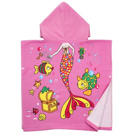 Ručníkové pončo pro děti Merco Love Mermaid je ideálním doplňkem na pláž či k bazénu. Je vyrobené ze 100% polyesteru, skvěle saje a vaše dítě bude tak během chvilky suché. Pončo je lehké a skladné, zabere minimum místa ve vaší tašce či kufru. Volný střih umožňuje snadné převlékání. - materiál: 100% polyester - rozměry: 60 x 60 cm (bez kapuce) - hmotnost: cca 230 g