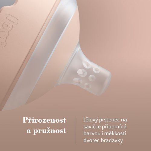 JEMNOST A SAMETOVÝ POCIT Matný, jemný povrch savičky napodobuje maminčinu pokožku, její texturu a jemnost.