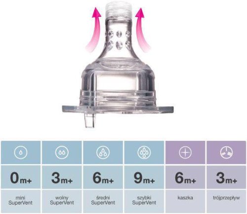 Systém vnitřních otvorů vytvořených podle modelu laktačních kanálků reguluje (zpomaluje) průtok pokrmu a stimuluje dítě k aktivnímu sání. Umožňuje kombinovat kojení a krmení z láhve.