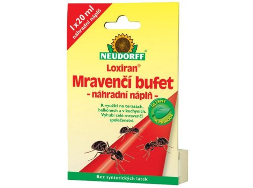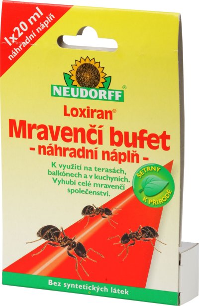 Náhradní náplň (balení obsahuje 2 x 20 ml) do doplňovací návnadové dózy s přírodním insekticidem je určena k odstranění mravenců na terasách, balkónech, sklenících, cestách i v obytných prostorech.