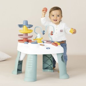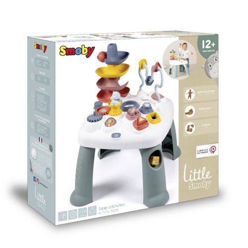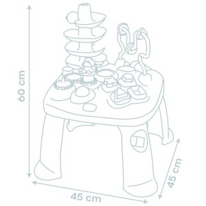 Všestranný hrací stůl Little Smoby Activity se svými četnými funkcemi slibuje vzrušující herní dobrodružství pro děti od 12 měsíců. Tato interaktivní výuková hračka zve děti k objevování a zkoumání. Mnoho barevných herních prvků přitahuje pozornost těch nejmenších a trénuje motorické a sluchové dovednosti. Ve hře na rozpoznávání tvarů se stavební kameny zasouvají do příslušných otvorů. Malá kuličková dráha s rampou vás zve ke hře a zkoušení. Rozměry produktu (DxŠxV): 45 x 45 x 60 cm.