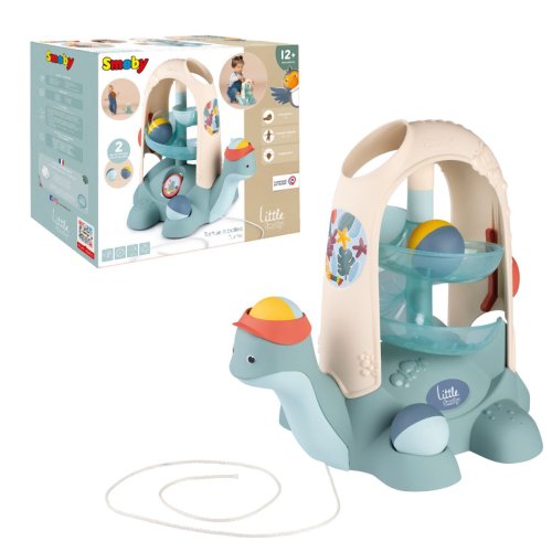 Barevná želva z řady Little Smoby je výrobek 2 v 1: okruh pro míčky a tahací hračka. Jednoduše vložte míček do horní části krunýře a ten se sroluje až na konec želvího ocasu, kde se opět vykulí. Želva je na provázku. Trénuje motoriku a koordinaci, pro děti od 12 měsíců. Balení obsahuje i dva míčky. Rozměry výrobku 28x20x29.