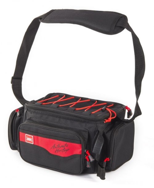 3 plastové boxy na hromadné návnady s nastavitelnými přepážkami 3 plastové sáčky na měkké návnady s opakovaně použitelnými SPTA zámky Plastová kapsa s vnitřním víkem se zapínáním na suchý zip Zapínání na spojku se zámkem na oblečení Velká přední kapsa pro další příslušenství Dvě boční kapsy pro snadný přístup Držák na další prut Místo pro rybářskou bižuterii s ochranou proti ztrátě