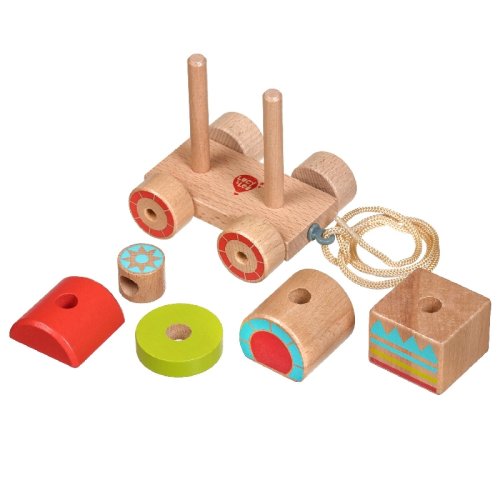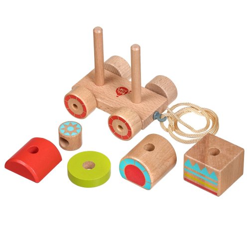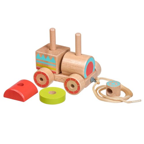Dřevěná tahací mašinka je dřevěná skládačka s 6 barevnými díly, které je třeba poskládat tak, aby mašinka mohla vyrazit na cesty. Praktický provázek umožňuje hračku táhnout a vzít s sebou kamkoli. Tato vzdělávací hračka má pozitivní vliv na logické myšlení, obratnost a pohybové dovednosti dítěte. Výška složeného vlaku 9 cm, délka 11 cm, rozměry dílků vlaku cca 4,5 x 4 cm. Délka provázku 45 cm.