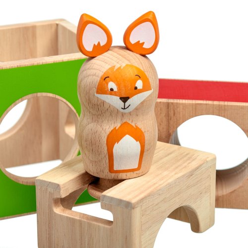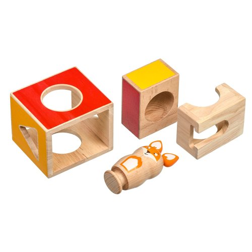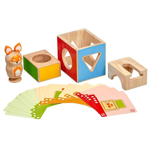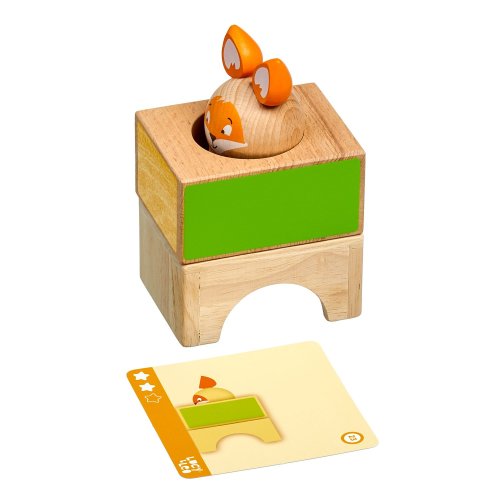Mazaná liška je dřevěná skládačka, ve které si malá liška velmi ráda hraje na schovávanou, ale potřebuje vaši pomoc, aby se schovala mezi barevnými bloky, do kterých je třeba jí vložit. Skládá se ze 3 dřevěných kostek s otvory různých tvarů, dřevěné barevné figurky lišky a 21 oboustranných karet s úkoly různých úrovní obtížnosti. Cílem hry je uspořádat kostky a lišku dle vyobrazení na kartách. Skládačka je skvělá pro rozvoj logického myšlení, prostorového vidění, jemné motoriky a dětské představivosti. Je i dobrým pomocníkem při trénování barev, tvarů a především slovních druhů - příslovce a předložek. Tato hračka je označován jako Montessori pomůcka.