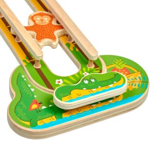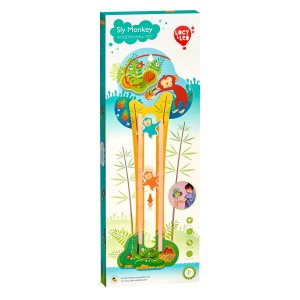 Mazané opičky je dřevěná nástěnná hra, připevnitelná na zeď s krásnou barevnou základní deskou s motivem džungle se zvířátky. Na desce je připevněná dvojice speciálních drážek vyobrazených jako kmeny stromů. 2 dřevěné mazané opičky po umístění na vrchol stromu začnou sešplhávat směrem dolů, dělají přemety a otáčí se podél cesty, dokud neskončí na konci stromu. Hračka je skvělá pro aktivní děti, které chtějí věci rozhýbat a mají rády legraci a zábavu. Tato hračka podporuje jemnou dětskou motoriku a koordinaci. Upevňovací prvky jsou součástí balení.