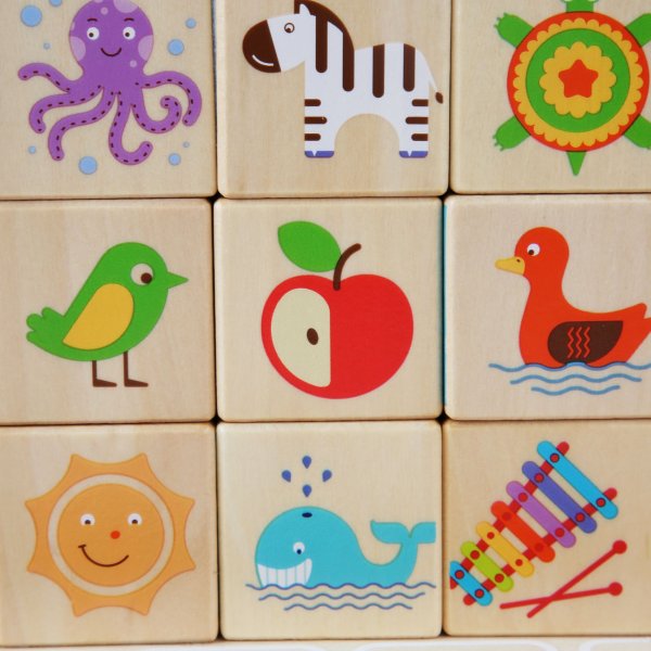 Chytré kostky je multifunkční vzdělávací set, který obsahuje sadu 30 kostek, rámečkem ohraněnou vzdělávací podložku s abecedou a 15 oboustranných karet se speciálními grafickými předlohami. Na kostkách najdeme písmena, obrázky související s těmito písmeny pro výuku angličtiny, číslice, a speciální tvary k poskládání různých obrazců dle přiložených karet. Tato úžasná edukativní sada kostek s dítětem doslova roste několik let. Malé děti využijí kostky jako klasickou hračku, oblíbenou dětmi po mnoho generací, určenou pro skládání a poznávání zvířátek a různých věcí ze svého okolí. Děti předškolního věku se zde mohou seznámit se základním číslicemi a písmeny. Díky podložce s abecedou je mohou přiřazovat na příslušné místo a naučit se tak jejich posloupnost v abecedě. Tyto kostky jsou však ideálním pomocníkem především při výuce angličtiny, protože každé znázorněné písmenko na jedné straně kostky má na jiné straně kostky i svůj obrázek, který tímto písmenkem v angličtině začíná. Jako bonus navíc jsou zde přiložené karty s grafickými předlohami, podle kterých se dají kostky poskládat do různých obrazců připomínající tangram. Kostky jsou vyrobeny z kvalitního dřeva s hladkou povrchovou úpravou a natřeny ekologickými barvami odolnými proti slinám.