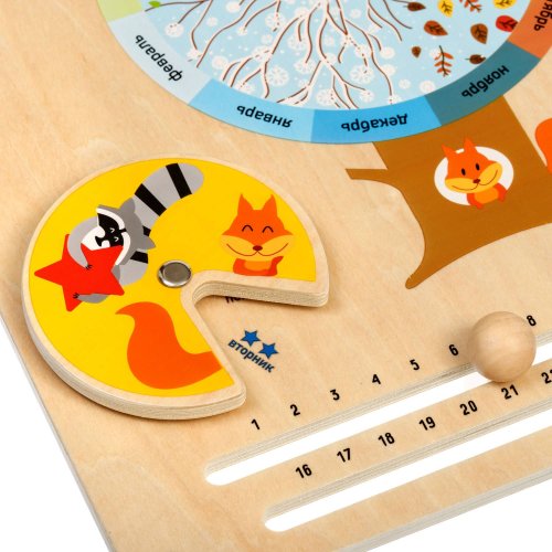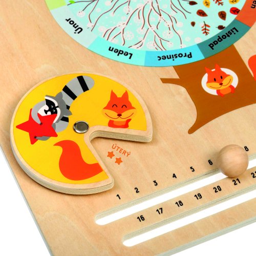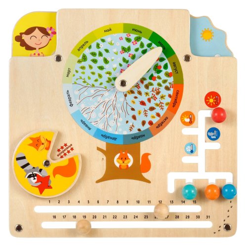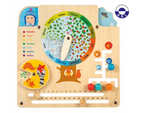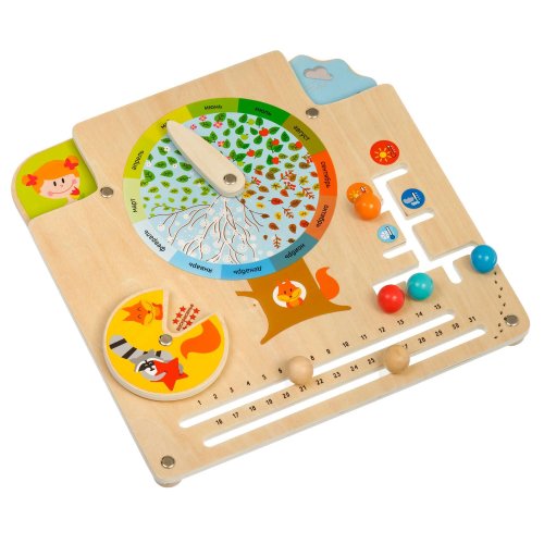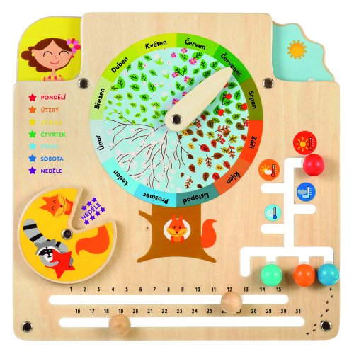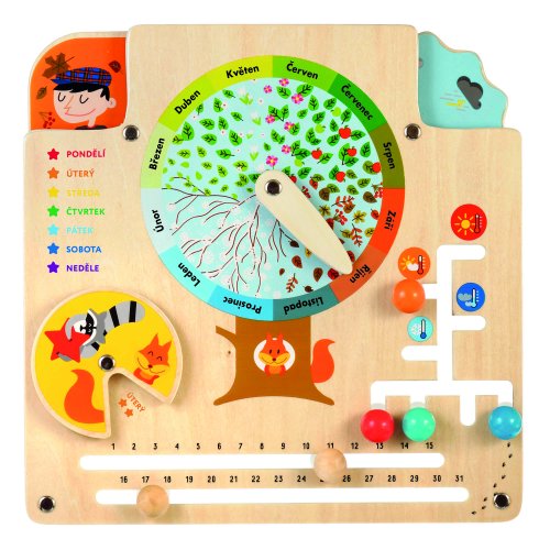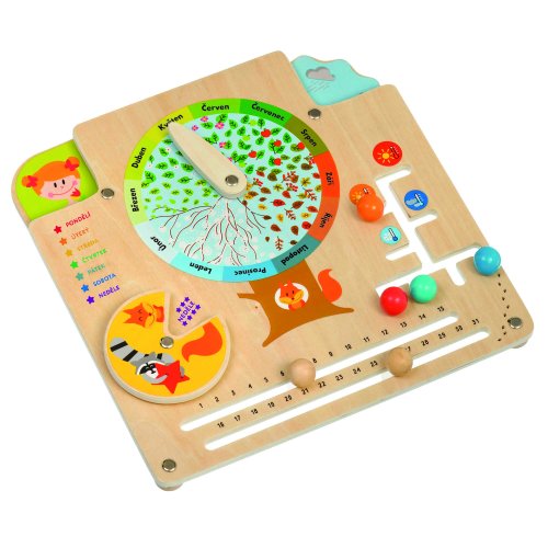 Kalendář přírody je dřevěná vzdělávací hračka, která seznamuje dítě ve věku od 3 let se zajímavostmi ročních období. Uprostřed dřevěné hrací desky je listnatý ovocný strom s pohyblivým ukazatelem, zobrazující 12 kalendářních měsíců. Každé roční období se vyznačuje svými vlastními znaky, takže dítě od raného věku bude spojovat zimu se zasněženými stromy a holými větvemi, jaro s květy a čerstvou zelení, léto s voňavým ovocem a podzim s opadáváním listů. Kromě ročních období se dítě naučí poznávat i dny v týdnu, počet dní v měsíci, rozpoznat příslušné variabilní teploty v jednotlivých ročních obdobích, povětrnostní podmínky a nebo zvolit vhodné oblečení do daného počasí. Hračka rozvíjí motorické dovednosti a logické myšlení. Balení obsahuje hrací desku s různými hracími prvky. Tato hračka je označována jako Montessori pomůcka.