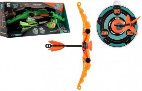 Zaměřte a vystřelte šíp na terč. Šípy mají na svém konci přísavky. Tyto přísavky slouží k přichycení šípu na cílovou plochu nebo jiný hladký povrch. Balení obsahuje luk, 2 šípy a terč. Rozměr luku: 27 cm Vhodné od 3 let