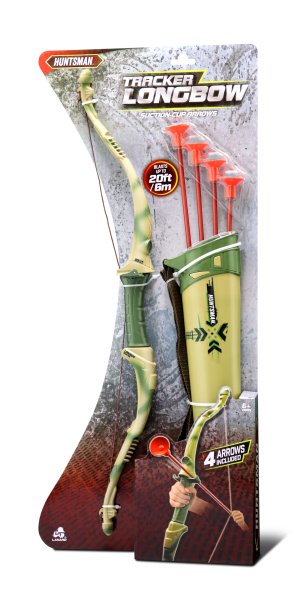 Zahrej si na lovce s lukem a šípy. Balení obsahuje 4 šípy s přísavkami a toulec s popruhem. Tětiva z pleteného provázku. Ramena luku jsou pružná. Dostřel až 6 metrů. Délka luku: 61cm.