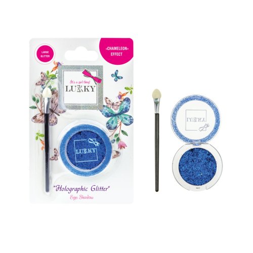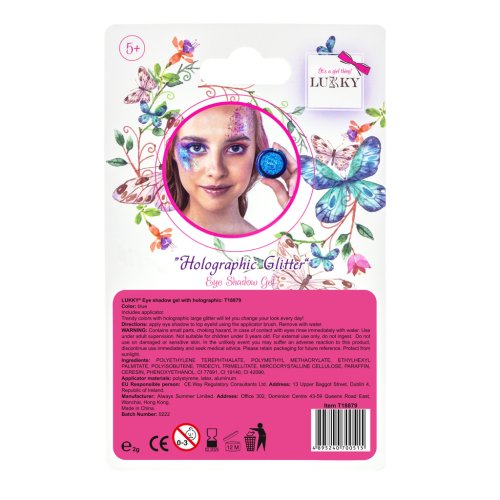 Gelové oční stíny Lukky s holografickými třpytkami a štětcem. Vhodné pro děti od 3 let.