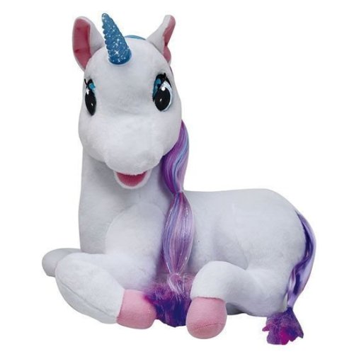 LUNA je tak roztomilý jednorožec. Poví Vám 3 pohádky (Popelka, Zlatovláska, Krásná Locika). Luna mrká očima a její roh svítí magickými barvami. Velikost 36cm. Pro děti od 2 let. Baterie: 3xAA - jsou součástí balení.