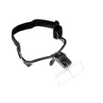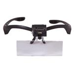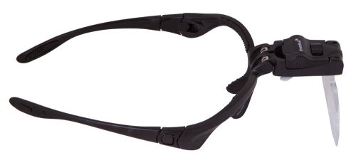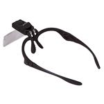 umožňuje lupu nosit jako běžné brýle, a nylonovou čelenku, která lupu