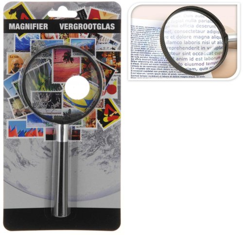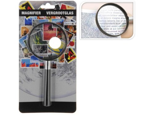 průměr: 60 mm, celková délka 100 mm materiál: skleněná lupa, PP rukojeť zvětšení: 2 x