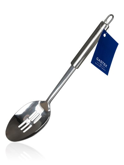 Lžíce s otvory AZORA, vyrobená z nerezavějící oceli, je určena pro profesionální i domácí použití. Lžíce je opatřena praktickým očkem pro možnost zavěšení, snadno se udržuje, lze mýt v myčce na nádobí. Řada kuchyňského náčiní GASTEX splňuje náročné požadavky profesionálů a je vhodná i pro domácí použití. Jednoduchý funkční design zabezpečuje nadčasovost a dlouhou morální i kvalitativní životnost všech výrobků.
