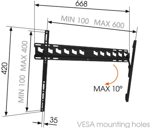 Spolehlivý držák na LCD s maximálním poměrem výkon/cena Hlavní vlastnosti: - doporučená úhlopříčka 40-80" - nosnost 60 kg - nastavitelný náklon 0-10° - vzdálenost TV od stěny v poloze u stěny 35 mm - …