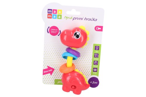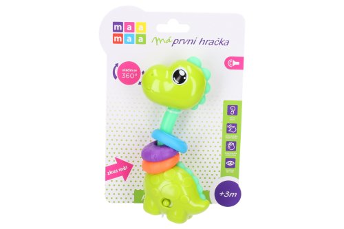 Maamaa Dino s efekty 14cm český obal. Světelné a zvukové efekty stlačením hlavy dolů. 3xAG13 baterie součástí. Přepínač ON/OFF na boční straně. 2 varianty - zelená, červená.