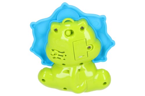 Maamaa Dino. Světelné a zvukové efekty otočením válečku s notou. 3xAG13 baterie součástí. Přepínač ON/OFF na zadní straně. 2 varianty - zelená, červená.