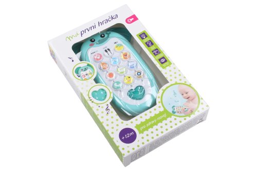 Telefon dětský slon. Velikost 13,5 cm. Vydává světelné a zvukové efekty. Efekty se aktivují tlačítky. 3xAAA baterie (nejsou součástí).
