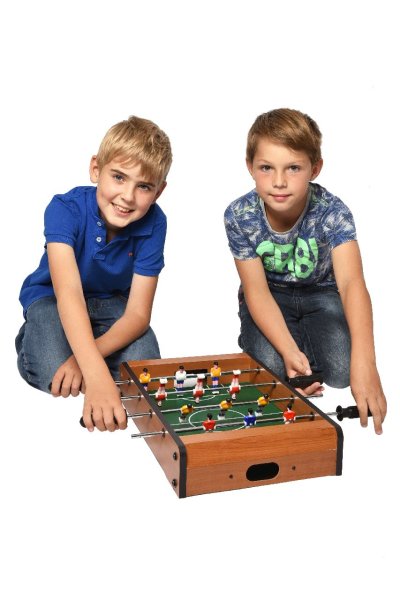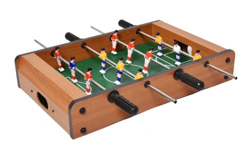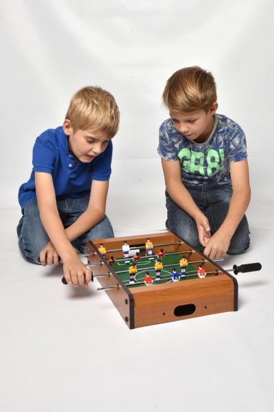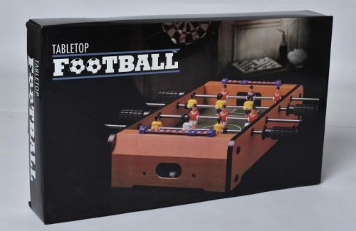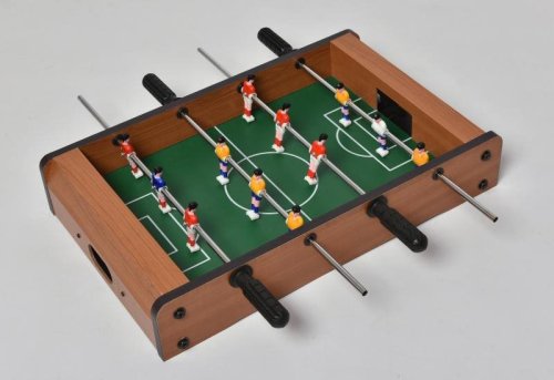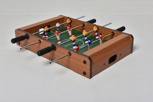 Tento menší stolní fotbálek je určen pro zábavu a trénuje motoriku a koordinaci rukou a očí! Vybavený 6 figurkami na každé straně určitě hráče nadchne skvělými souboji na stole! Hračka je vyrobena z barevného a lakovaného dřeva. Fotbálek je vybaven počítadly gólů a je dodáván včetně 2 míčků.