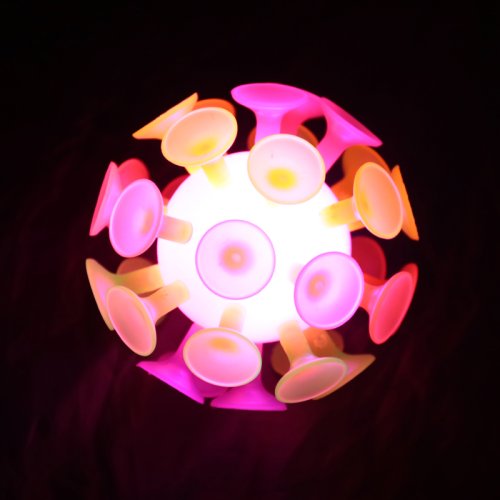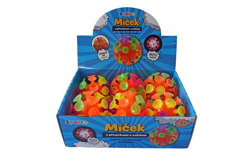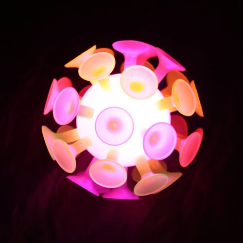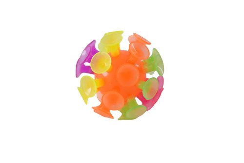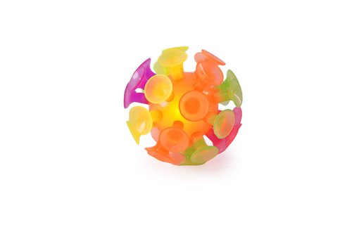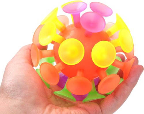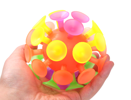Gumový míček, který je pokrytý přísavkami.