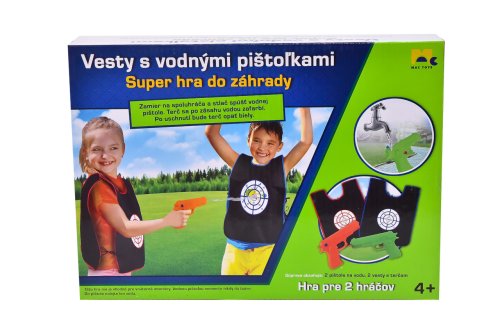 Balení obsahuje: 2 pistole na vodu a 2 vesty s terčem