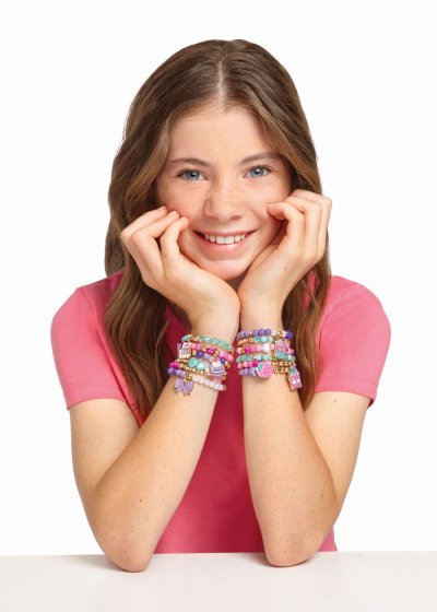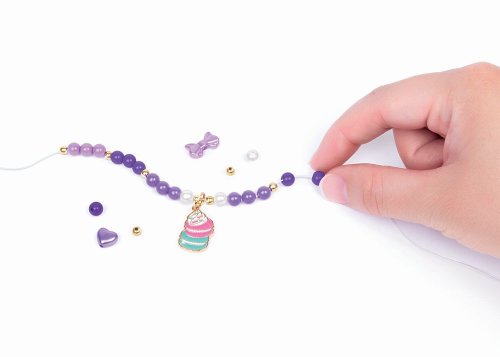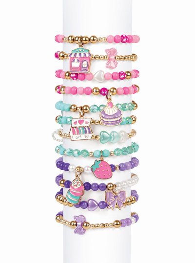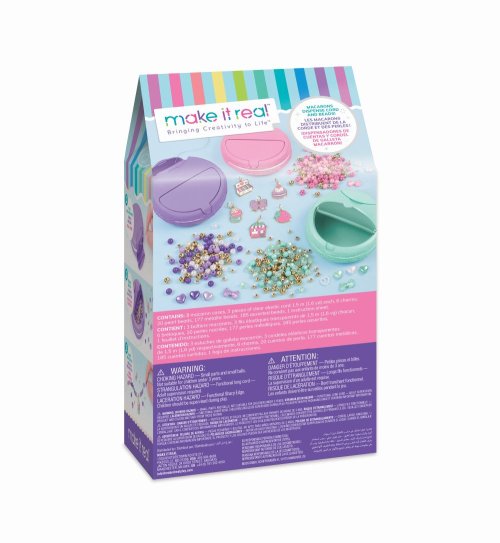Díky 3 výrobcům náramků ve tvaru makaronů jsme vyrobili náramky ještě sladší! Každý macaron obsahuje vše potřebné k výrobě 4 náramků pro celkem 12 sladkých doplňků. Vytáhněte a obtočte šňůru po obvodu macaronu, abyste šňůru změřili a odstřihli. Otevřete pouzdro a najděte přívěsky a korálky s motivem dezertů připravené k ozdobení každého náramku. Noste rozkošných 12 náramků nebo darujte přátelům, abyste se podělili o nějakou sladkost! Ukládejte náramky a materiály zpět do macaronů mezi řemeslnými seancemi pro zábavu bez nepořádku. To je skvělý tip na dárek pro mladé kreativce, ať už k svátku, narozeninám nebo jen tak! Darujte kreativitu a sebevyjádření. Ideální pro věk 8+.