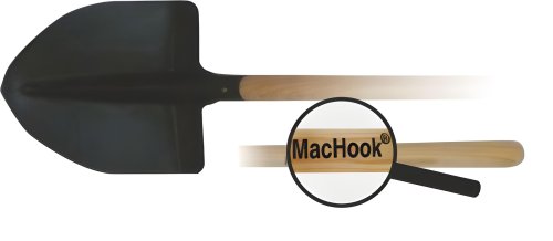 Černá špičatá lopata s dřevěnou násadou vhodná na zahradu i na stvabu.