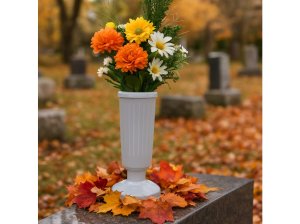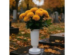 Plastová hřbitovní váza se zátěží pro bezpečné a stabilní umístění květin na hrobě.